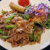 Please select one entree accompanied by your preferred choice of meat. this selection includes a serving side of salad and veggies egg roll. (Noodle dish do not serve with rice)