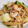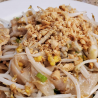 The most popular Thai'f100dle.stir-fried in house sauce, egg green onion, and bean sprouts with crushed peanut.