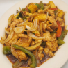 A slight spicy stir-fried with mushrooms, onion, ginger and bell pepper in garlic sauce.