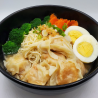 Shrimp wonton with celery, napa cabbage, carrot, onion, garlic and scallion in clear chicken broth.