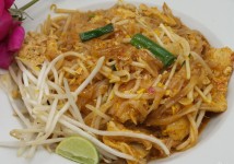 The most popular Thai'f100dle.stir-fried in house sauce, egg green onion, and bean sprouts with crushed peanut.